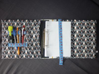 Nachdem ich diesen süßen Pinguinstoff in Dänemark gekauft hatte und ich nicht wußte, wozu ich ihn nutzen könnte, kam mir die Idee zu einem "tragbaren" Büro :)