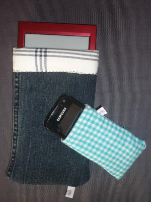 Hier meine ersten Nähversuche... ein neues Heim für das Ebook und das Mobile :)